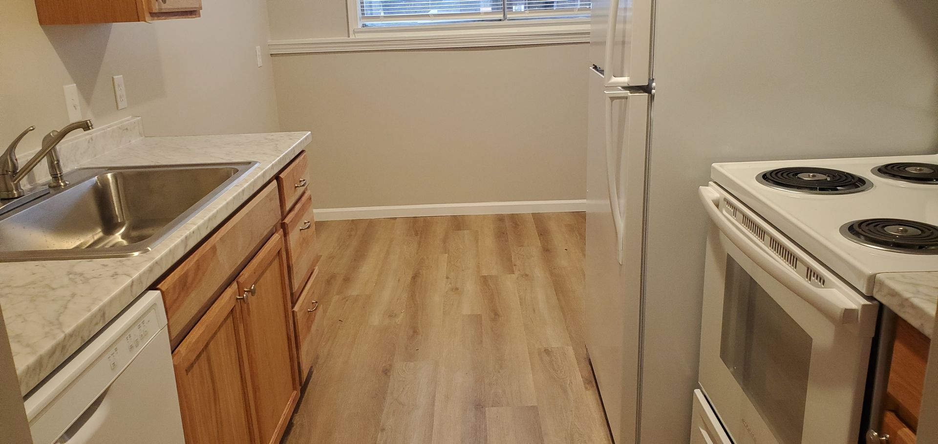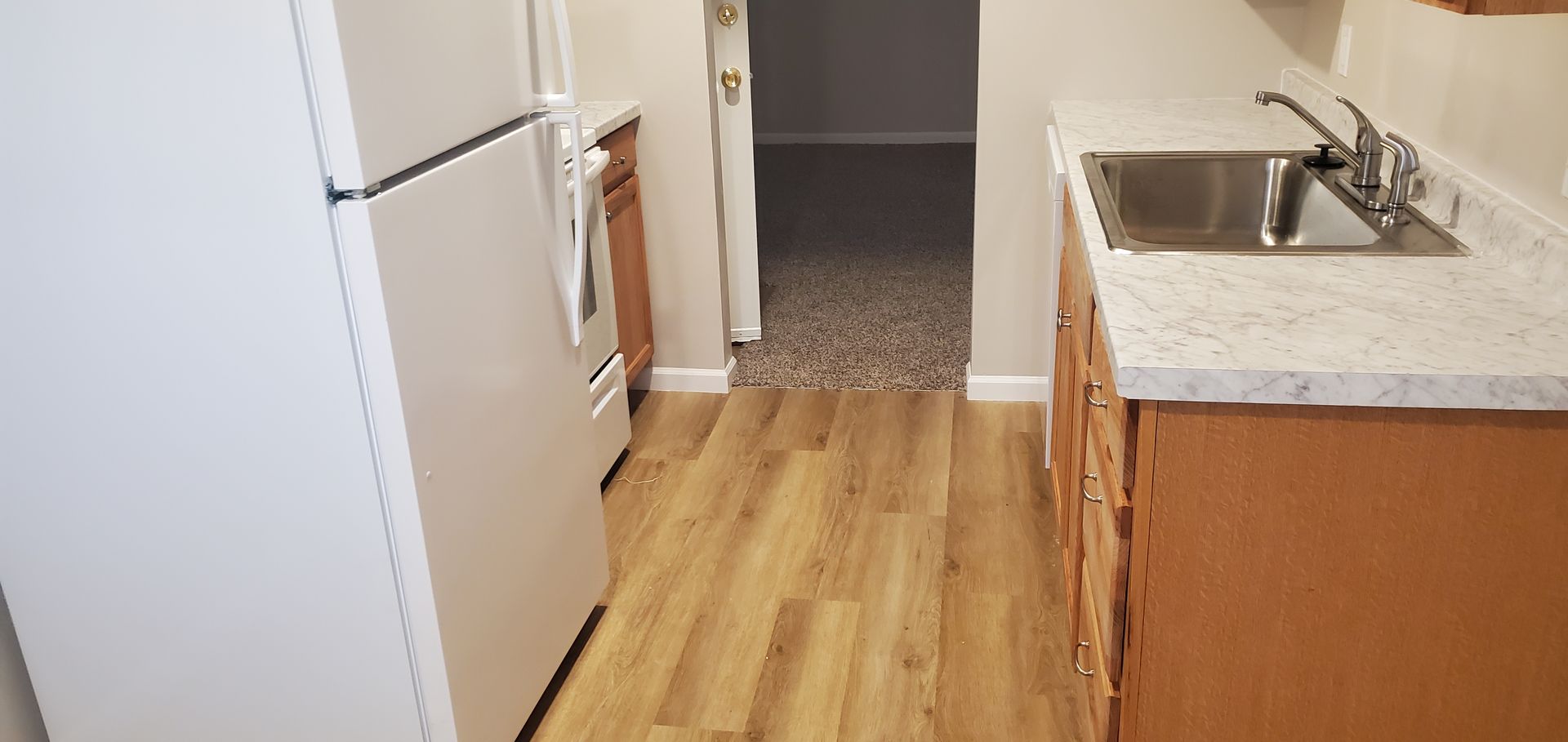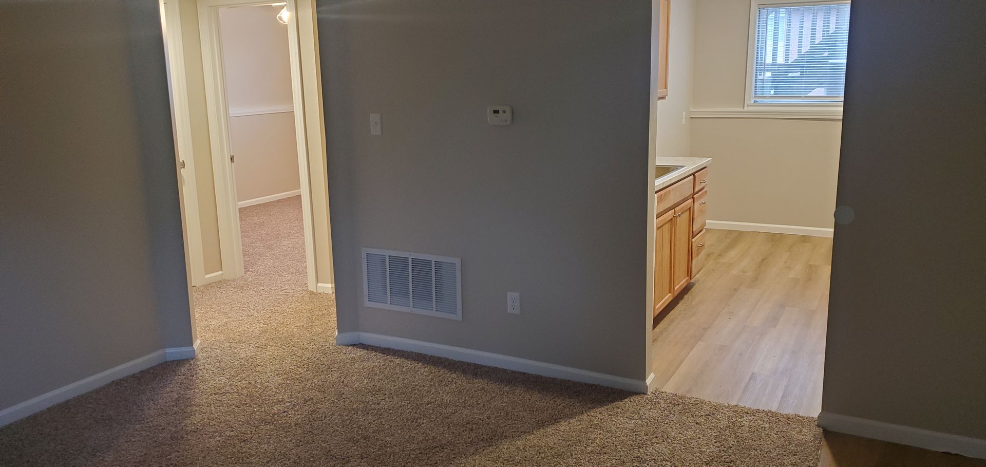 2 bd, 1 ba apartment, completely redone inside with new paint, carpet, bathroom and kitchen, near business loop/I-70