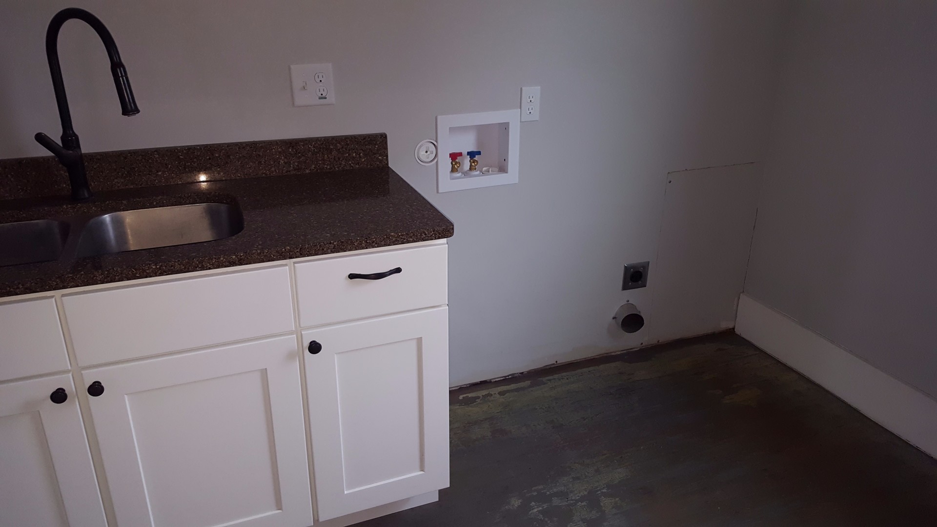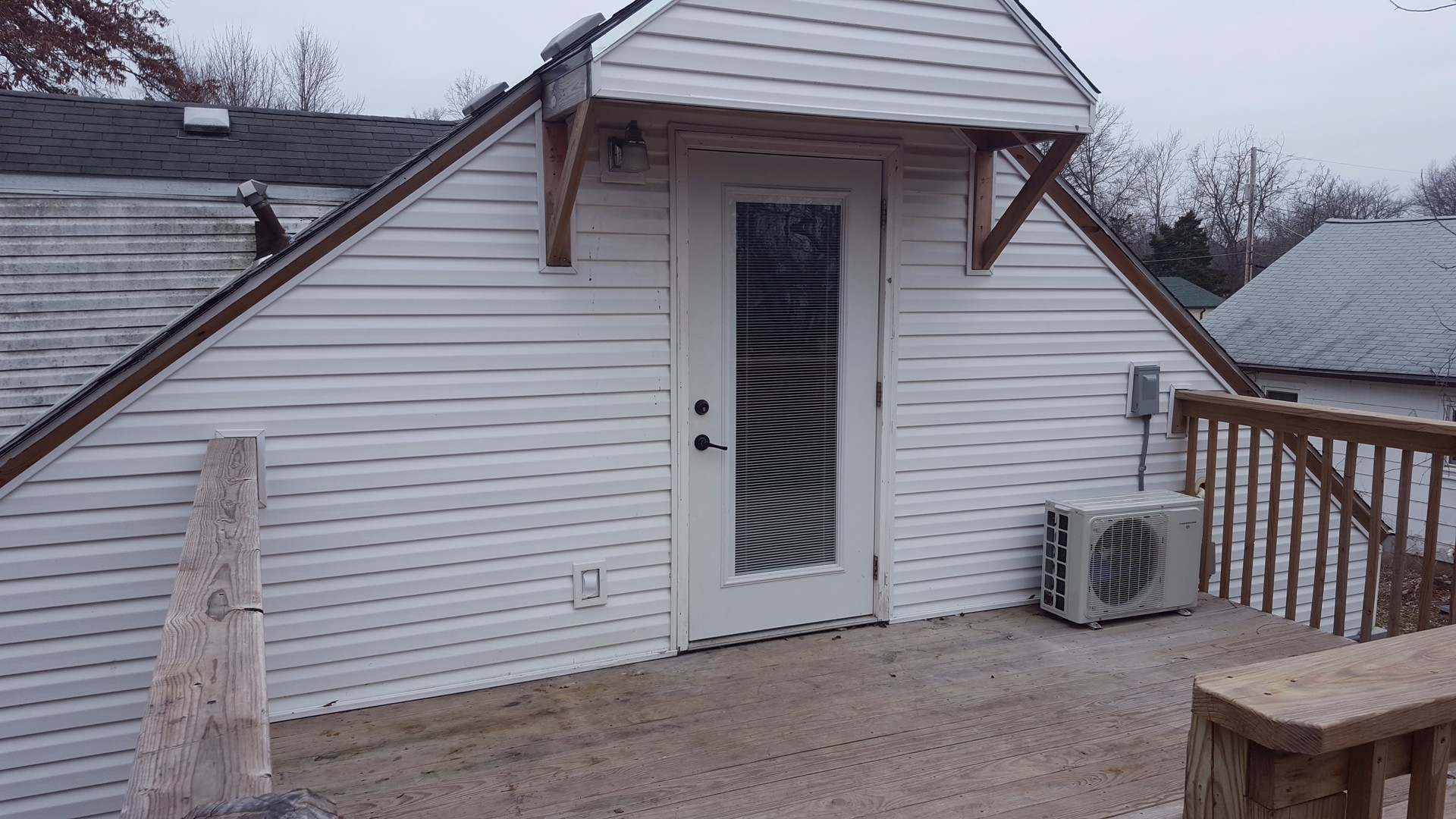 Large top level studio apartment with access in back, window air conditioner, dishwasher, washer and dryer hookups provided, central location near Garth and Business Loop on bus line, off street parking, water included, deck, wood floors. Unit is the top level of a converted house. No pets allowed.