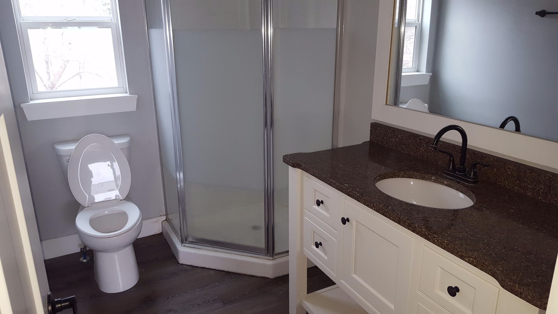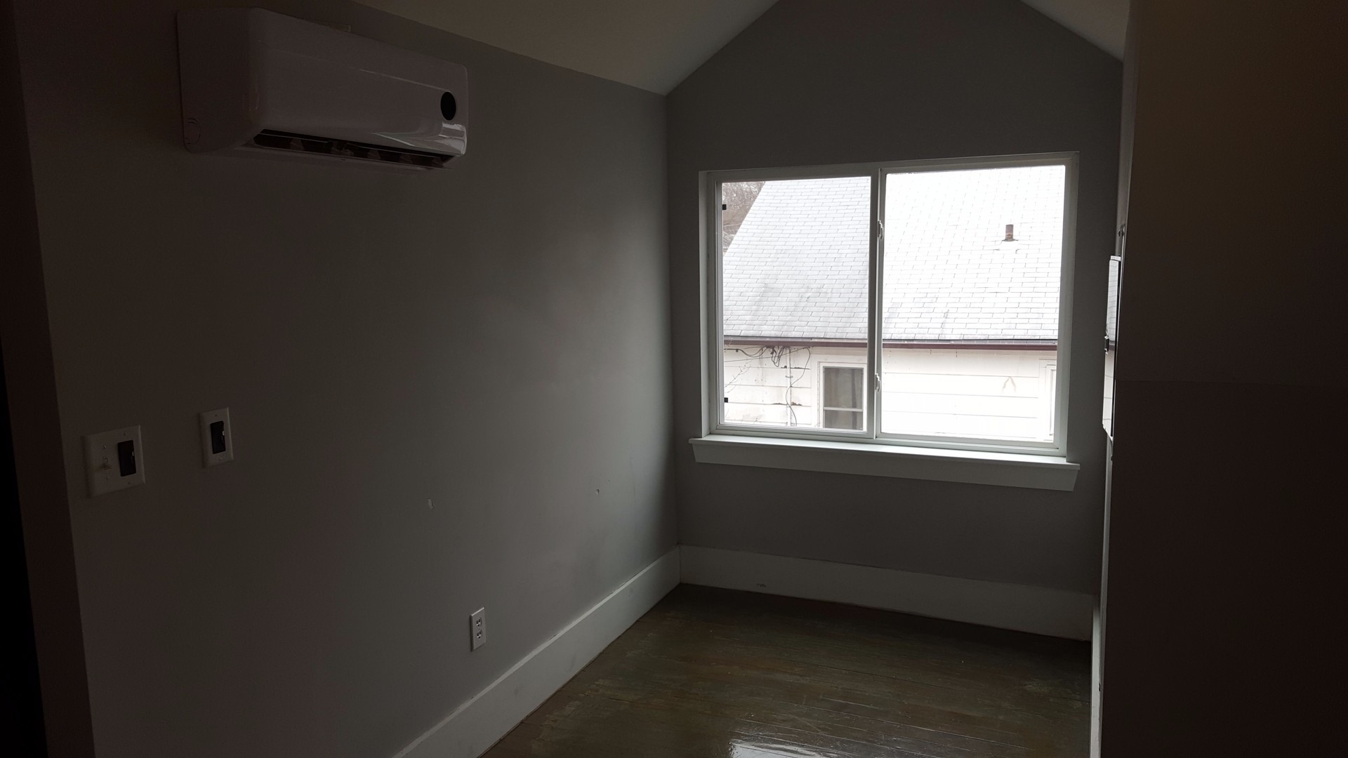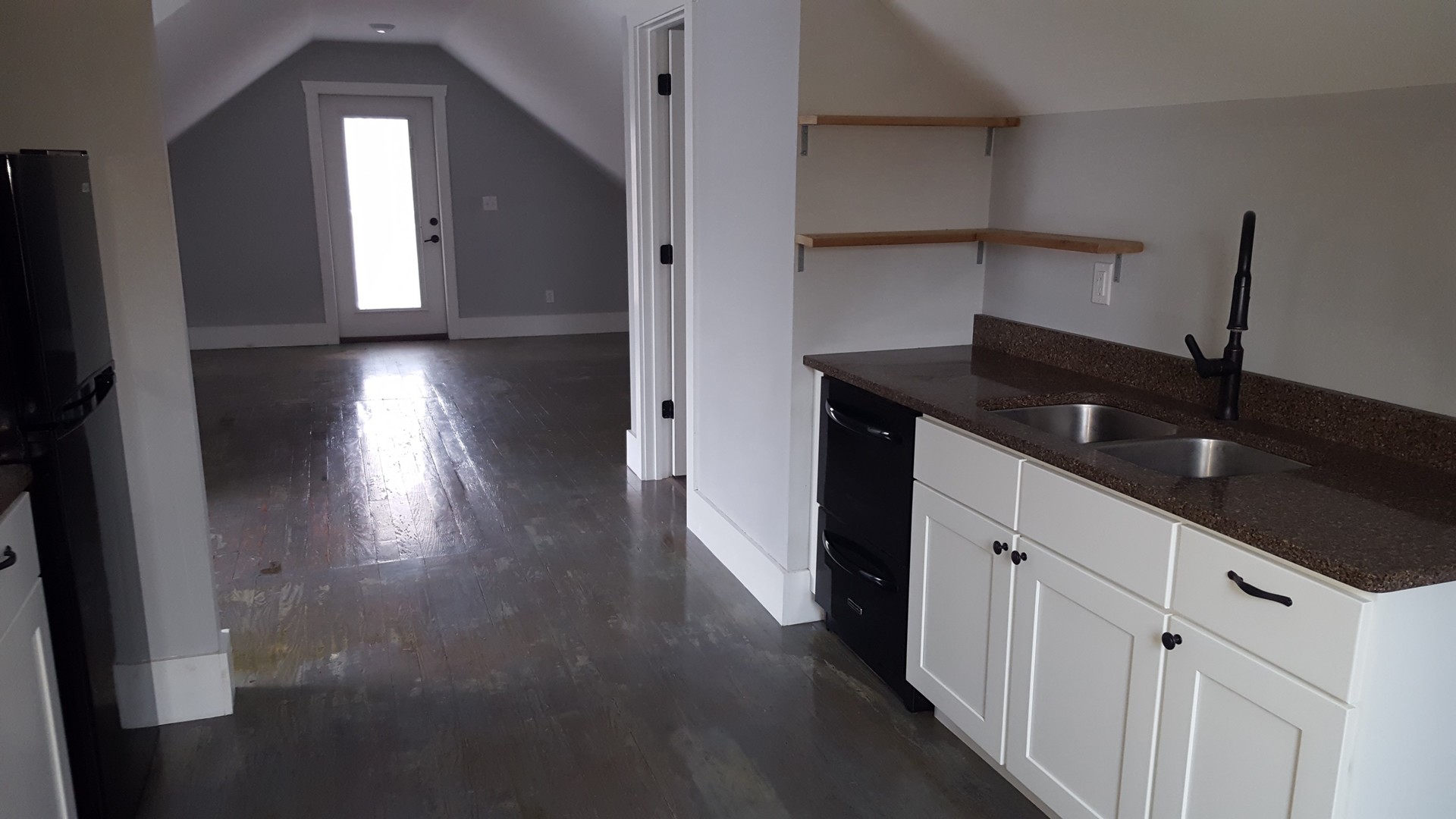 Studio top level apartment, central location with off street parking, water paid, AC, DW, w/d hookups, wood floors